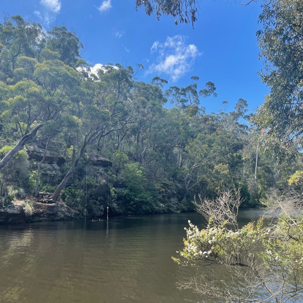 Nice little swimming hole with jump rocks and rope swings. Limited parking and a short trek down the hill to get there.