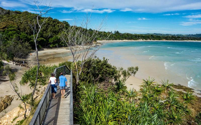 Located between Main Beach and The Pass in Byron Bay, Clarkes Beach is family-friendly with tidal pools. It offers stunning sunrise views, picnic facilities, and a nearby playground. Popular for beginner surfers on smaller wave days.