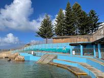 This picturesque tidal pool along South Australia's Yorke Peninsula coastline offers a serene swimming experience protected from ocean waves. The crystal-clear waters provide a perfect spot for a refreshing dip while enjoying stunning views across the gulf, making it an ideal destination for both families and lap swimmers seeking a peaceful ocean swim.