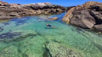 Tucked away on South Australia's pristine Eyre Peninsula, this secluded rockpool offers nature lovers a tranquil escape where the outback meets the sea. Crystal-clear waters trapped between ancient granite formations create a natural swimming sanctuary, perfect for spotting colorful marine life during low tide.
