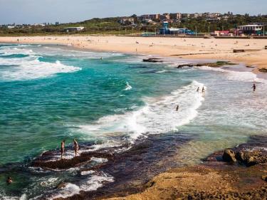 A 1km stretch of golden sand, offers powerful surf. Popular with surfers and beachgoers. Features rock pools, skate park, and playground. National Surfing Reserve. Less crowded than Bondi.