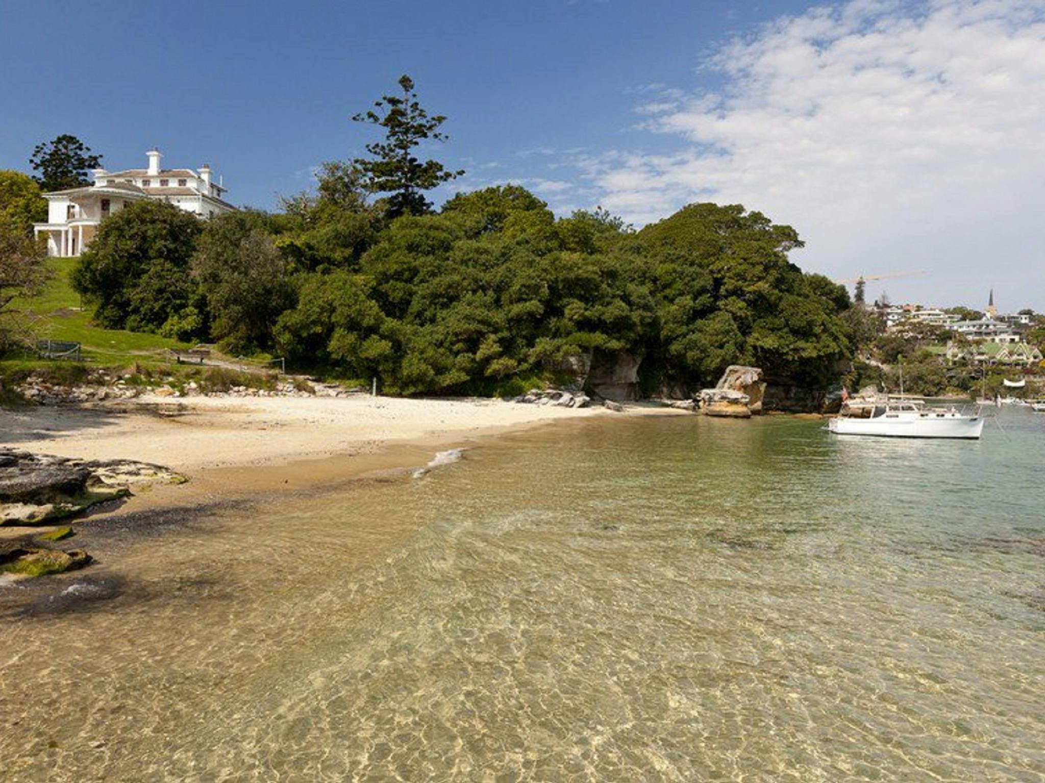 A small, secluded beach with turquoise water perfect for swimming and snorkeling, plus Sydney skyline views.