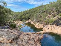 Nestled in the serene Queensland wilderness, these pristine natural rock pools offer a refreshing escape from the Australian heat. Crystal-clear waters cascade over ancient rock formations, creating perfect swimming spots surrounded by lush native bushland and the soothing sounds of flowing water.