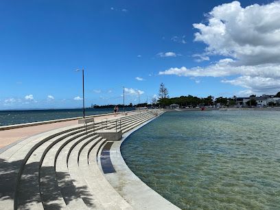 Large saltwater wading pool with a children's slide, restrooms, changing facilities & BBQ area.